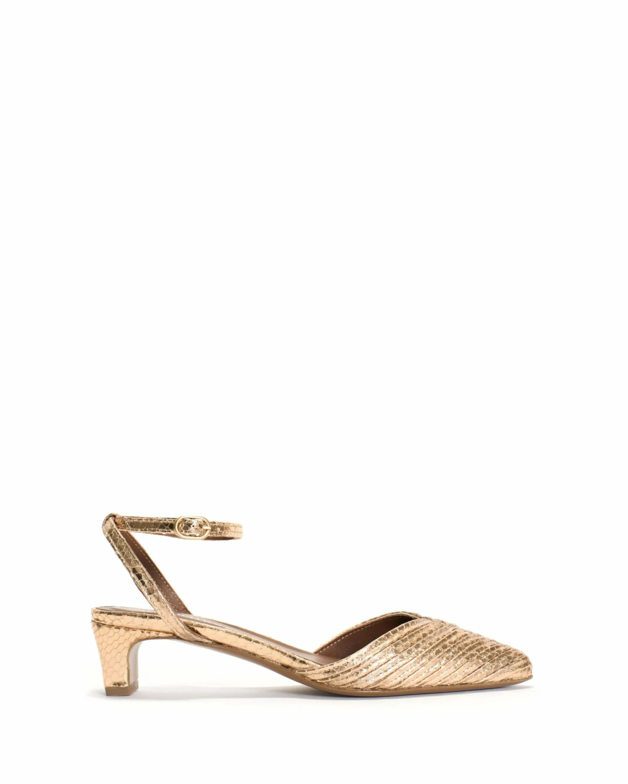 Upper: Snake metallic calf. More information about the material.