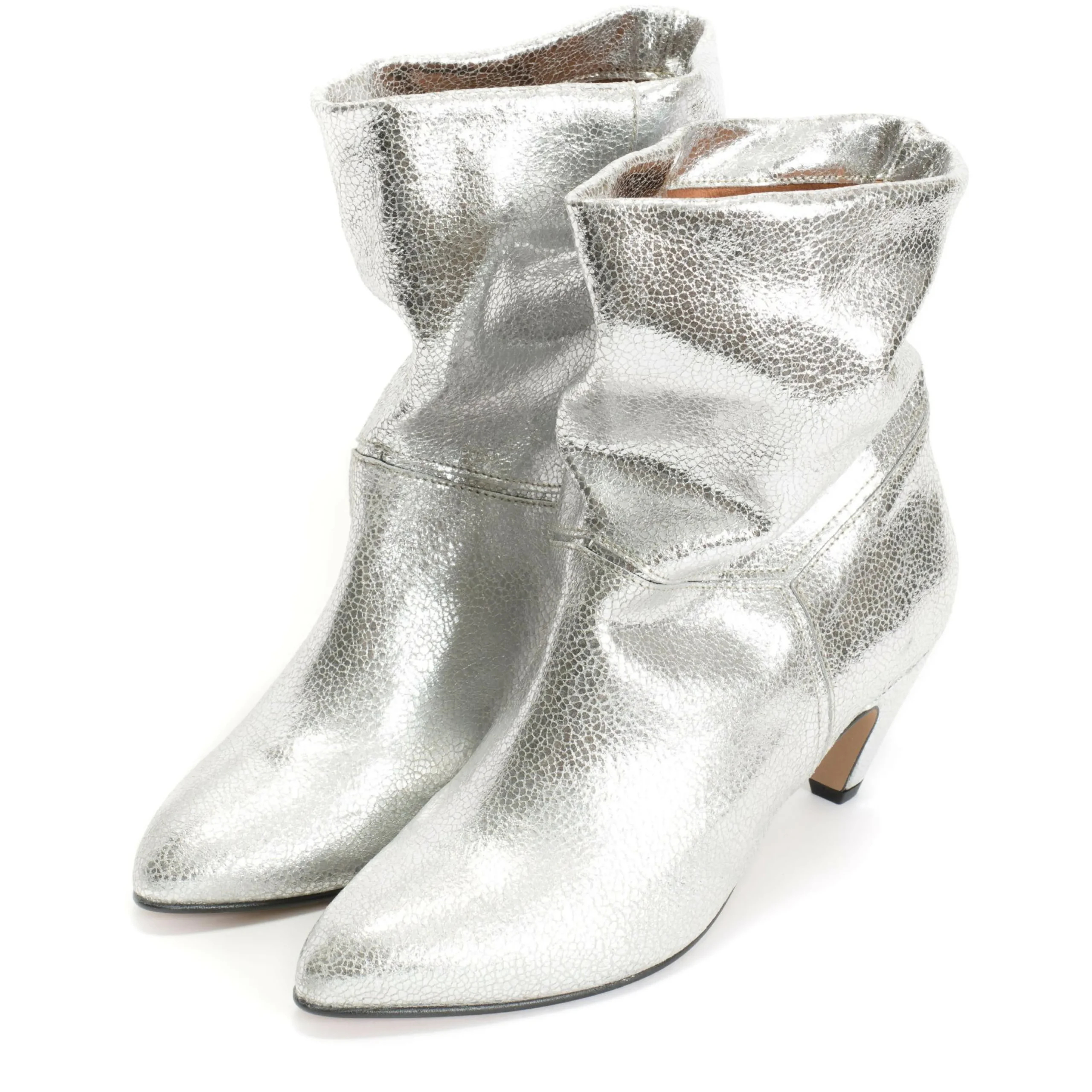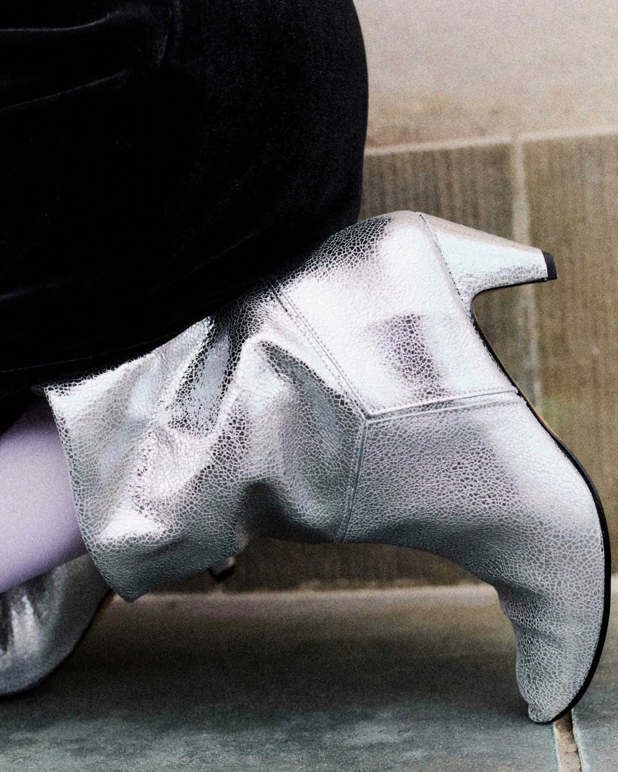 Shaft circumference: 32 cm/12.60″Upper: Crackled metallic goat. More information about the material.