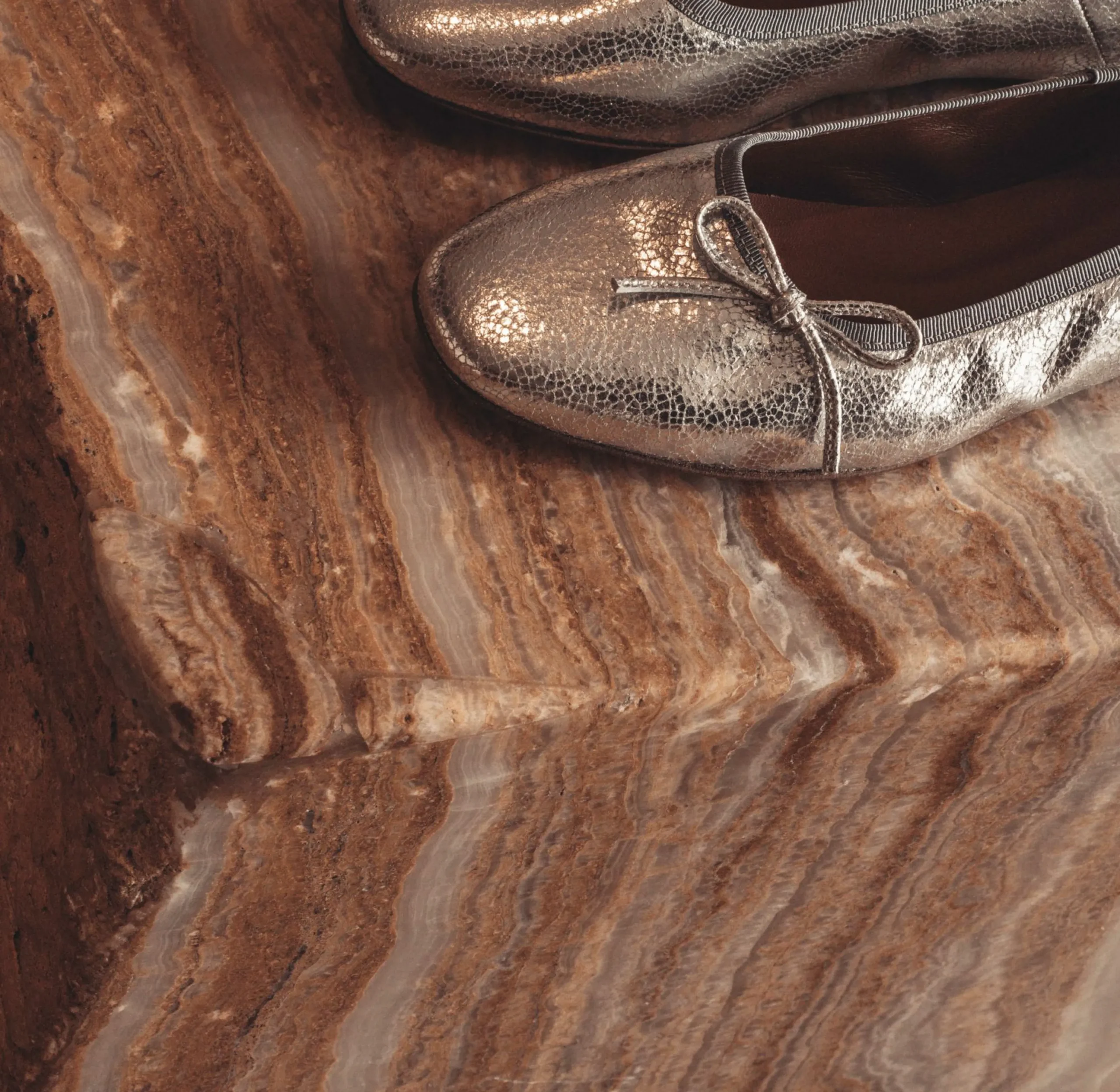 Upper: Crackled metallic goat. More information about the material.